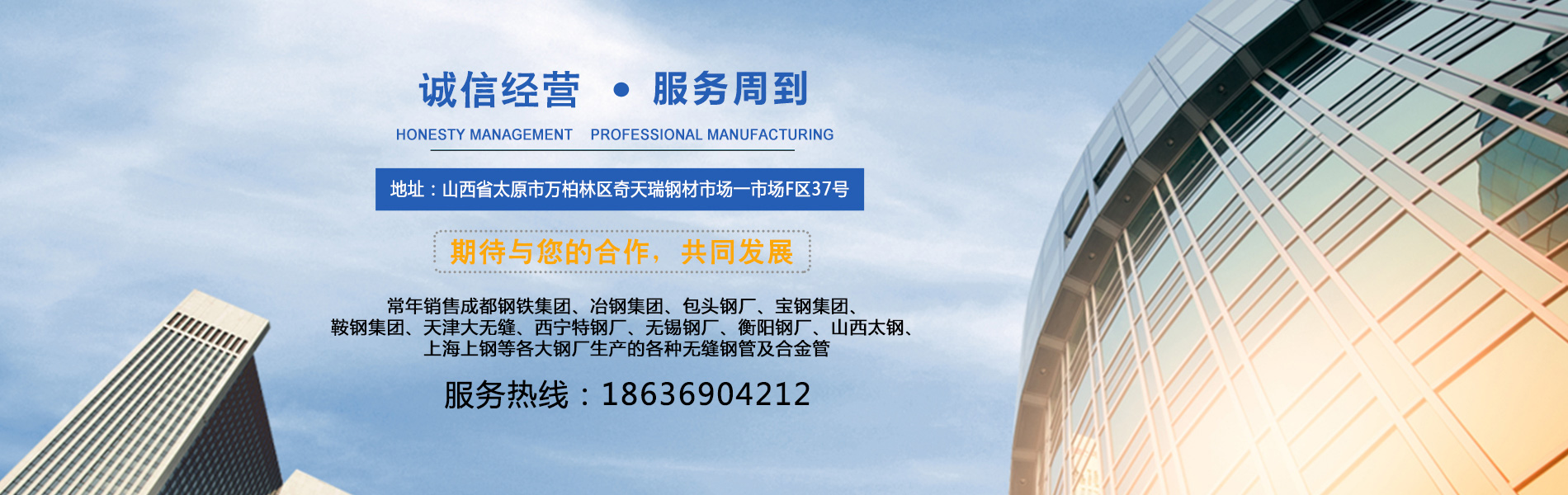山西衡泰尚盈貿(mào)易有限責任公司是集生產(chǎn)加工經(jīng)營于一體的無縫鋼管、不銹鋼管、合金管、鍋爐管、液壓支柱管、方管、方矩管、不銹鋼板等的大型企業(yè),常年銷售成都鋼鐵集團、冶鋼集團、包頭鋼廠、寶鋼集團、鞍鋼集團、天津大無縫、西寧特鋼廠、無錫鋼廠、衡陽鋼廠、山西太鋼、上海上鋼等各大鋼廠生產(chǎn)的各種無縫鋼管及合金管。